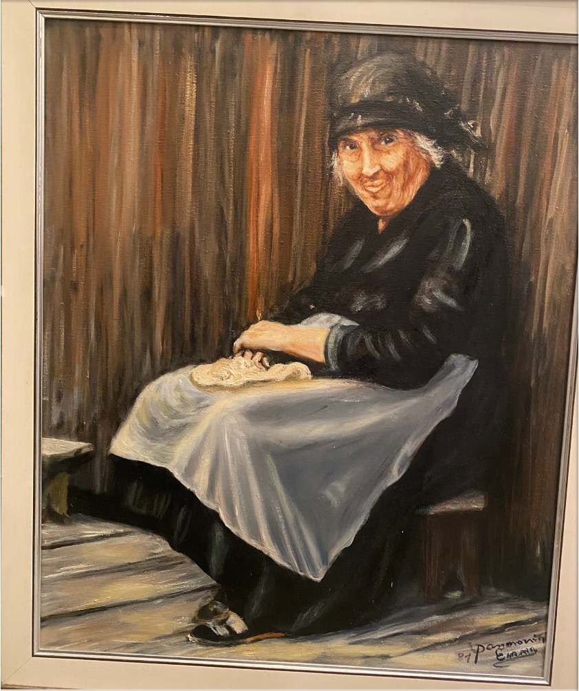 Quando, agli inizi degli anni Sessanta, arrivò qui in Ticino, lavorava in fabbrica ma si creò anche una clientela come sarta. Poi, nel tempo libero, quando i figli divennero grandi, iniziò a dipingere: aveva all’incirca quarant’anni di età. All’inizio non aveva grandi possibilità economiche per comprare le tele e le ricavava lei stessa dalla tela della Valtellina, che usava per il lavoro di sarta.